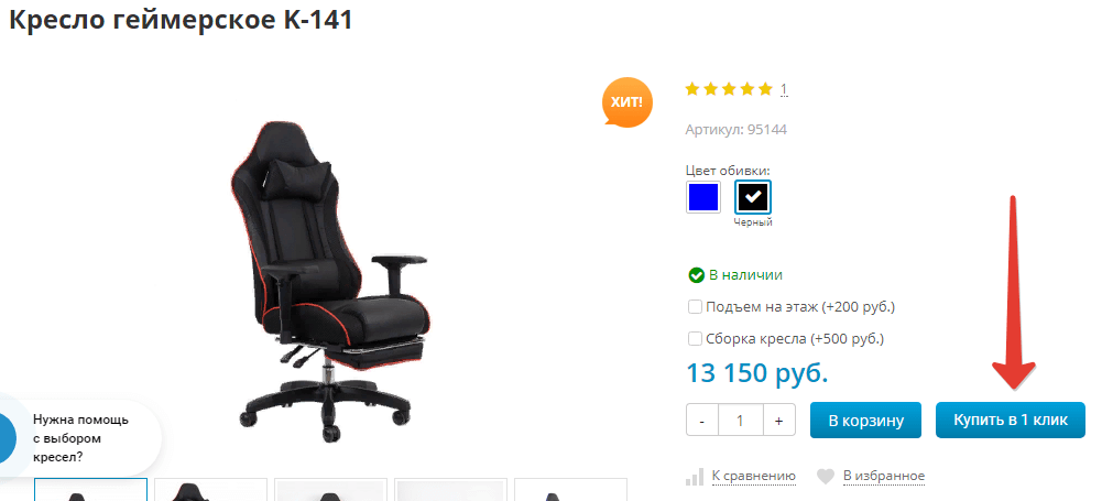 - В карточке товара нажмите на кнопку «Купить в 1 клик».