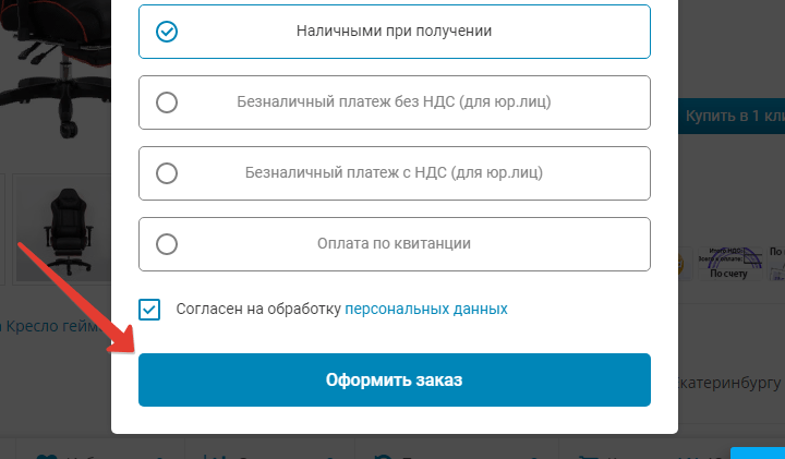 - В появившейся форме заполните обязательные поля и нажмите на кнопку «Оформить заказ».
