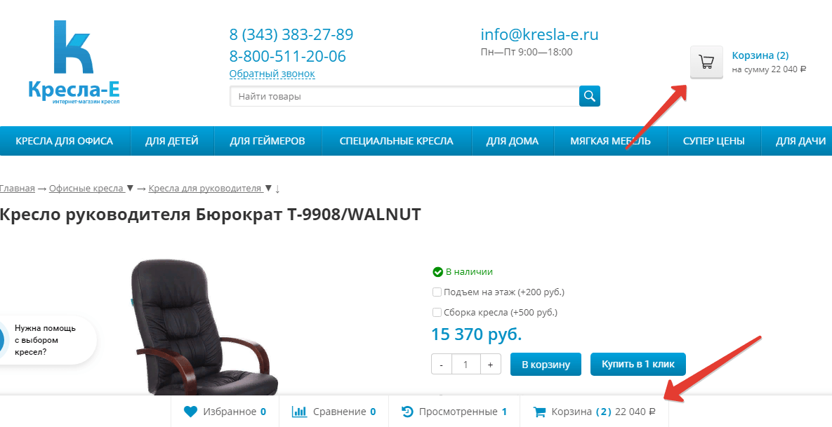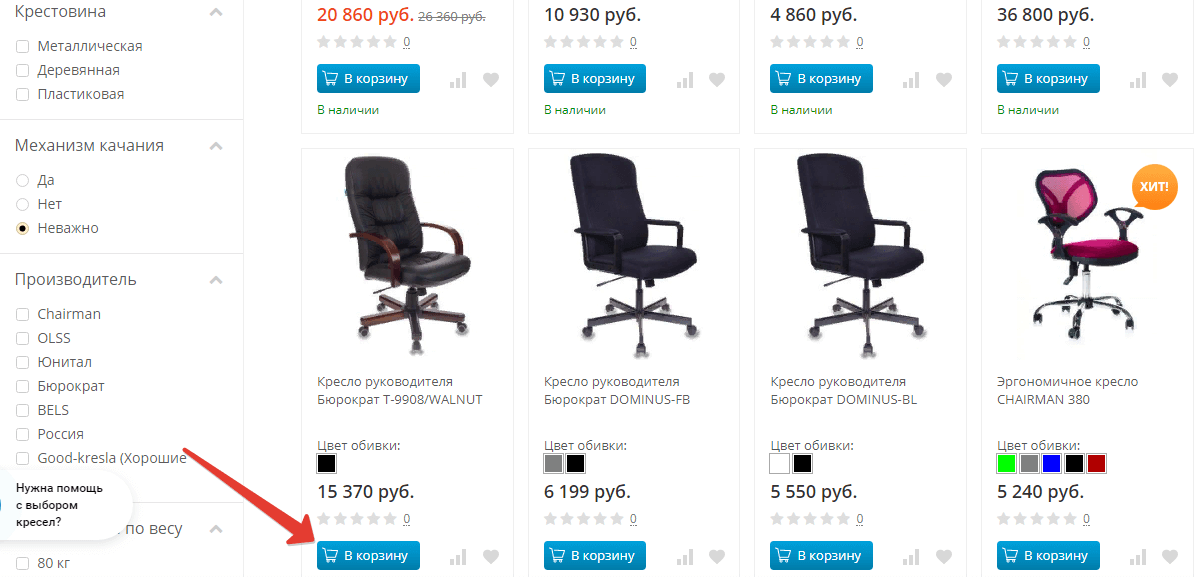 - Сначала вам необходимо добавить выбранный товар в корзину, для этого нажмите на кнопку «В корзину» в каталоге: