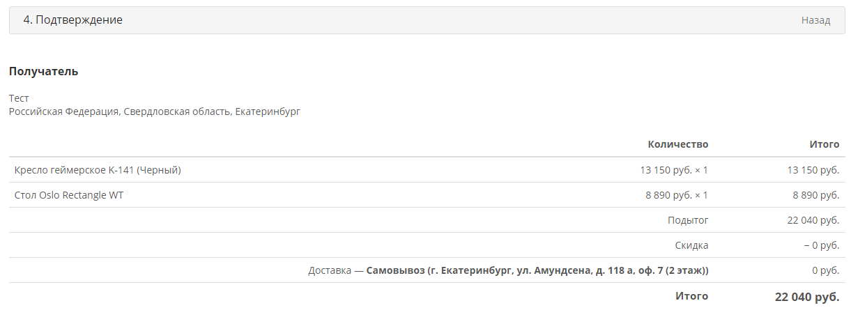 Здесь же вы можете отредактировать количество товаров, удалить ненужные, добавить необходимы допуслуги и применить скидочные купоны. - Следующая часть состоит из 4 шагов: